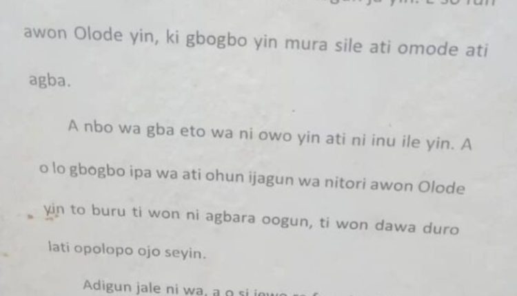In the letter written in Yoruba Language, the robbers alerted the public that the group of armed robbers would invade the community fully armed by the end of November.
