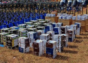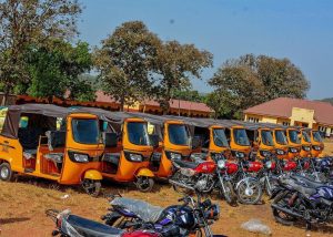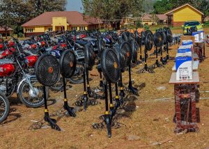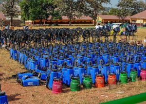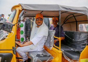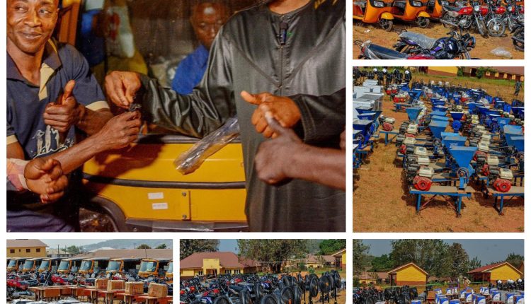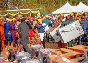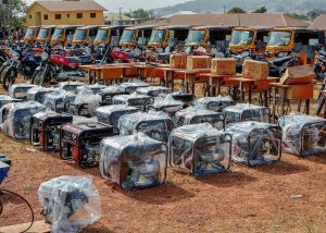Some items distributed includes sprayer, Cooking Gas, Refrigerator, Standing fans, Grinding Machine, Motorcycles, Tricycle, industrial sewing machine, campaign cars for all the 13 local government in the Oyo North senatorial district.