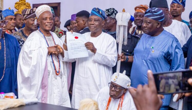 Senator Sharafadeen Alli (APC-Oyo South) has congratulated the Otun-Olubadan of Ibadanland, former Governor Rashidi Ladoja, on his recent elevation as a beaded crown-wearing Oba.