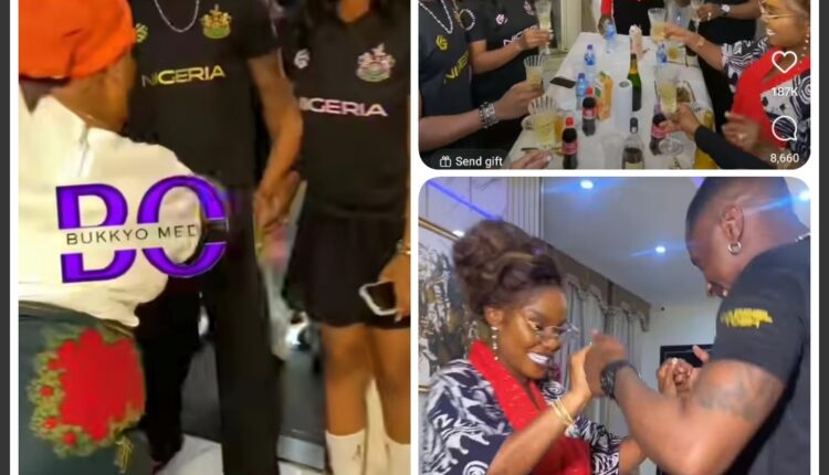 Upon arrival at Iyabo’s home, an elderly woman from the family spread Ankara at the entrance, inviting Jux to drop money – a gesture typically reserved for marriage introductions in Nigerian culture. Jux joyfully obliged, respectfully greeting Iyabo.